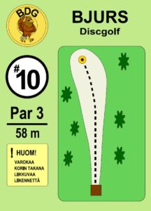 DiscGolf Bjurs sijaitsee saaressa Bjursin Vaunuilijat ry:n alueella, kulku lossilla (maksuton).