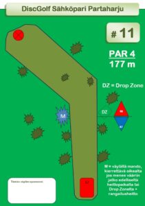Väylät pääosin selkeitä, mutta todella paljon sokkona sai heittää. Väylän pituus ei ole välttämättä edes montaa kymmentä metriä ja koria ei missään näkyvissä maastoerojen vuoksi. Vaatisi ehkä pari tai kolme kierrosta, että oppii tuntemaan. Näin ensimmäisellä kerralla kierrettynä joitain poikkeuksia lukuunottamatta ihan vierailun arvoinen rata. Uusia ratamuokkauksia oli tulon päällä ja puita kaatui kierroksen aikana. Yhtenä suurimpana kysymysmerkkinä toki viimeinen väylä ja lukuisat puut greenin sisällä. Miksi hyvä saari on jätetty puita täyteen?