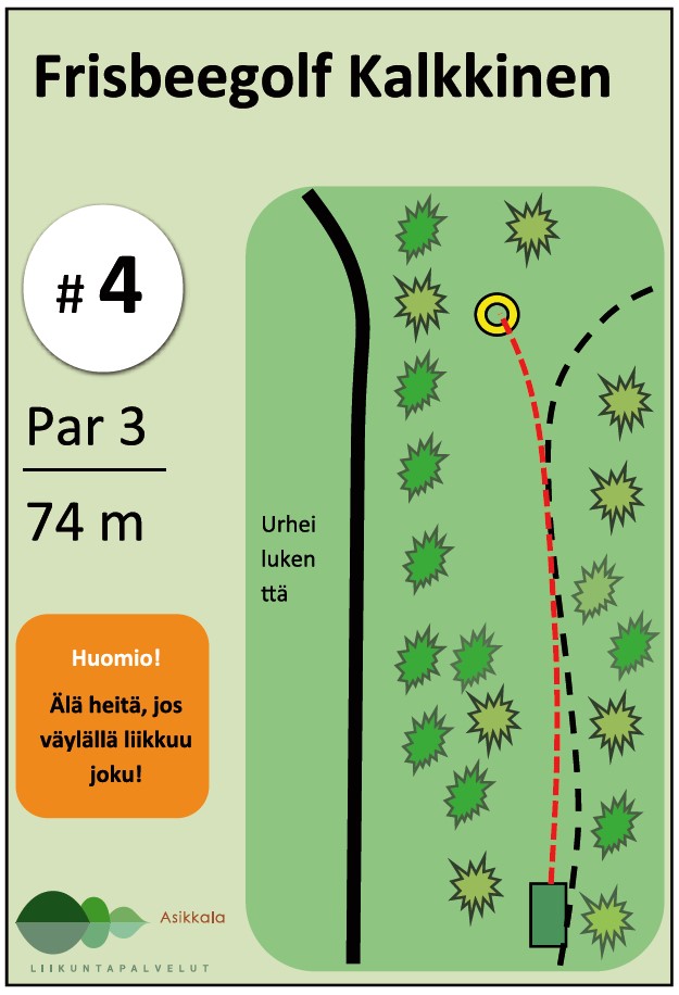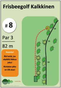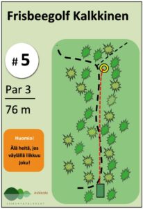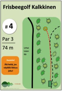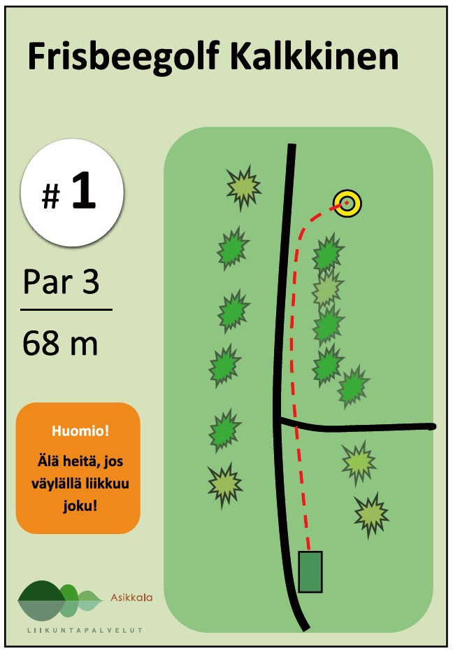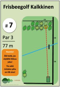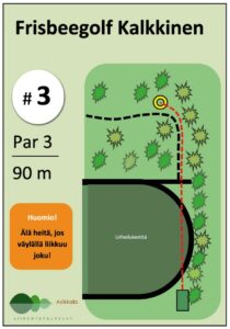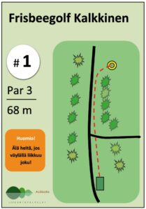 Kalkkisissa koulun ja urheilukentän ympäristössä poukkoileva 9-väyläinen frisbeegolfrata on sopivan haastava aloittelijalle, mutta antaa myös kokeneemille pelureille loistavan mahdollisuuden huikeisiin onnistumisiin!