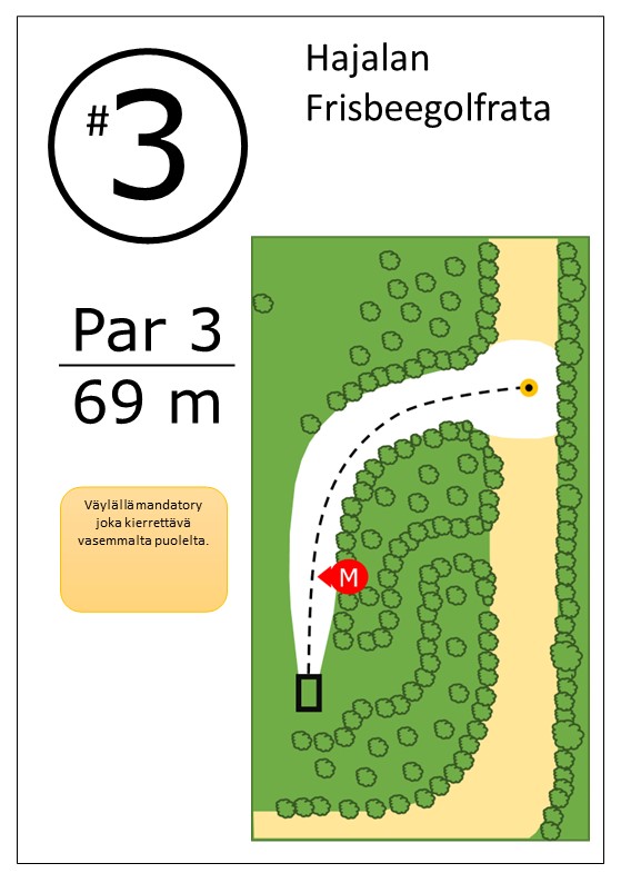 Yli 300 metrin siirtymä väylälle 4 ja lopulta takaisin parkkiin. Etenkin kierroksen loppuosassa radan ylläpitäjien hyvä vielä kehittää väylien linjoja ja poistaa oksakasoja.