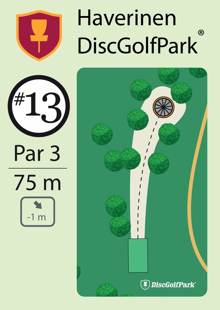 Haverisen metsärata sisälsi reippaasti korkeuseroja, joten ihan jonkinmoisesta kuntoilusta kävi radan kiertäminen. Mäntykangasmetsää, joten maasto kuivaa sateiden jälkeenkin ja kiekot löytyy yleensä hyvin maastosta. Hyvin vaihtelevia ja hienoja väyliä rata täynnä, löytyy kaikkea ylä- ja alamäkeä sekä tasaistakin. Vesimaisemaa tarjolla ajoittain taustalla. 5-väylä nätti suora tasamaan mäntykuja. 6-väylällä mittaa 153m josta 120m ylämäkeen. 7-väylällä mukava suora mäntykuja ylämäkeen. 9-väylä miellyttävä vasemmalle kaartuva alamäkiväylä. 10-väylä hieno vasemmalle kaartuva ylämäkiväylä. 17-väylä yksi pisimmistä ellei pisin puhtaasti metsässä mennyt väylä mikä etukäteen aikalailla arvelutti, mutta osoittautui oikeinkin pelattavaksi väyläksi. 18-väylä mukava lopetuksena, vasemmalle kaartuva alamäkiväylä. Siirtymät lyhyet.