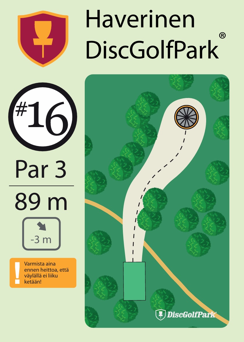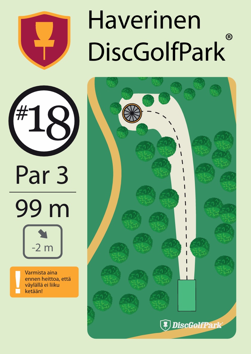 Väylät teknisiä ja vaihtelevia metsäväyliä. Mukana muutama pidempi par3 ja yksi tooooodella pitkä. Tais olla 167m loivaan alamäkeen.