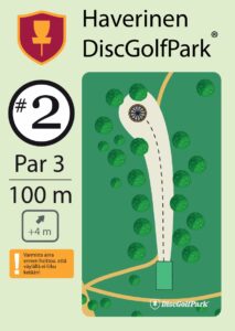 Rakenteet oikein erinomaisessa kunnossa. Löytyi ratakartta, heittopaikat, väyläopasteet ja DiscGolfPark korit nuolineen kaikki kuten pitää. Next tee -kylttejä ei ollut yhtään, mutta korinuolien avulla väylät löytyivät oikein mainiosti, kertaakaan ei karttaa tarvinnut vilkaista. Lukittava löytökiekkolaatikkokin oli info-taulun yhteydessä. Suomussalmen keskustan palvelut 6km päässä.