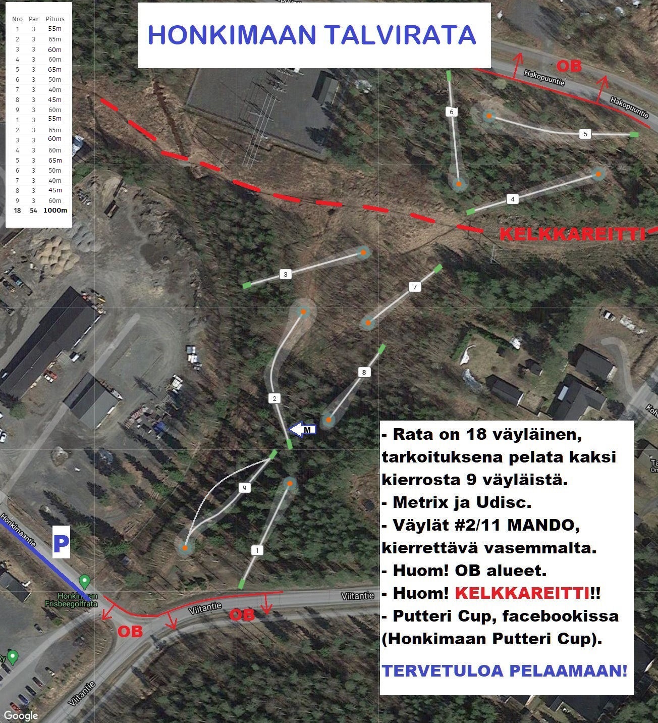 Pelattavissa talvella, talvikunnossapito 21-väyläinen kokonaisuus sijaitsee Kiimingissä Honkimaan hiihtoalueella.