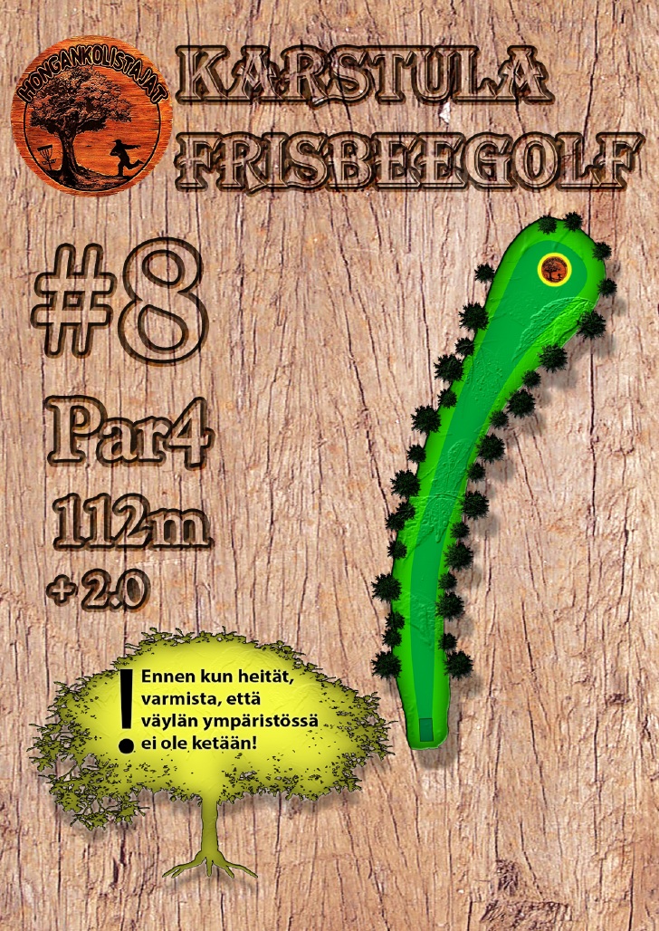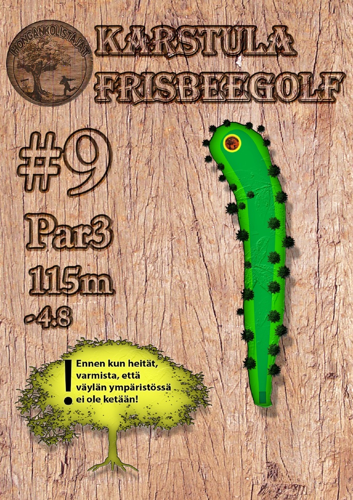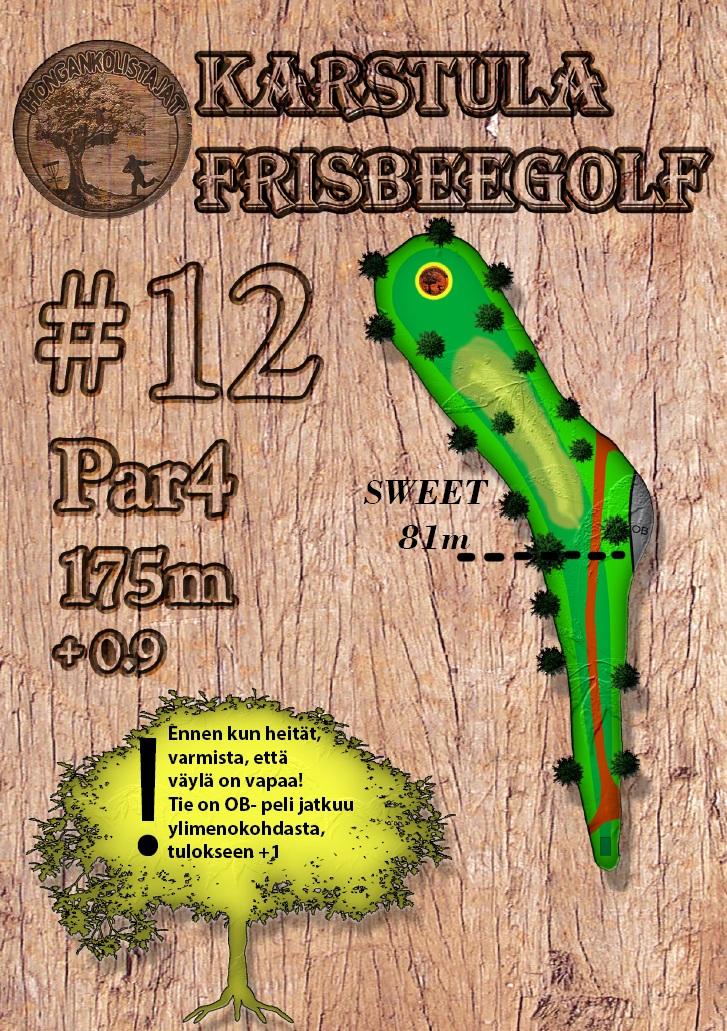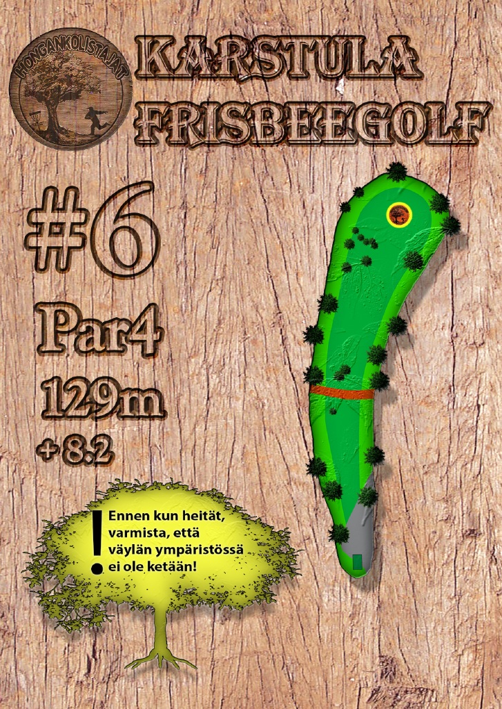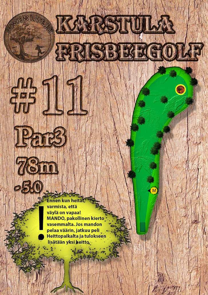 Karstulan rata sisälsi mukavasti korkeuseroja, joten hyvästä kuntoilusta kävi radan kiertäminen. Rata kiersi monipuolisesti erilaisissa ympäristöissä… välillä puistoa, välillä metsää ja välillä taas pururadan vartta. Hieno vesimaisemakin oli osin radalla läsnä. Kiekot löytyvät helposti. Väylät olivat vaihtelevia ja teknisiä ja tilaa oli pääsääntöisesti ilahduttavan paljon heittää. Siirtymät sopivia, ainoastaan 7 — 8 ja 14 — 15 hieman pidempiä. Siirtymistä kasille ysille mentäessä reitti oli varmasti yksi upeimmista mistä on radoilla koskaan kulkenut kallioiden välistä ylämäkeen. Väylistä suosikki nro 7 alamäkeen oikealle, puita haasteena. Samalla ko. väylä oli myös vaarallinen, sillä keskellä väylää meni kuntopolku ja puiden takia näkyväisyys nollassa, tarkka spottaaminen täysin välttämätöntä! Väylällä nro 10 kori oli nätisti kallion päällä ja nro 14 kori kallion edessä.
