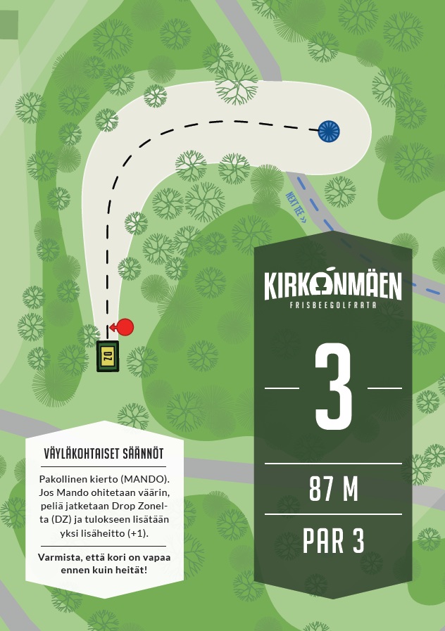 Ajankohtaiset tiedot radan facebook-sivuilta: https://www.facebook.com/kirkonmaenfrisbee/