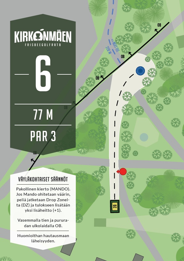 Rata sijaitsee aivan kirkon ja hautausmaan läheisyydessä, joten toivomme harkittua äänenkäyttöä pelatessa. Radalla on myös tupakointikielto alueen syttymisherkkyydestä johtuen, joten ethän tupakoi, kiitos!