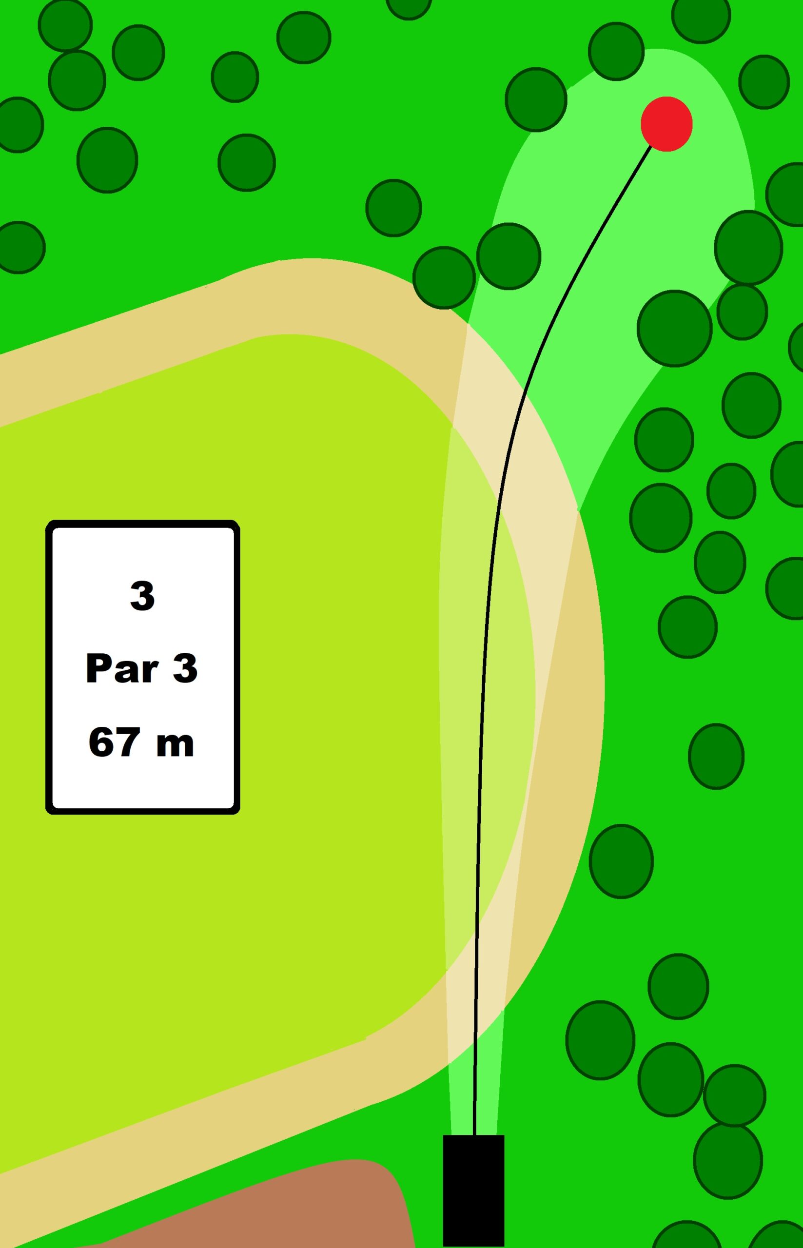 Pituus 67 metriä. Par 3