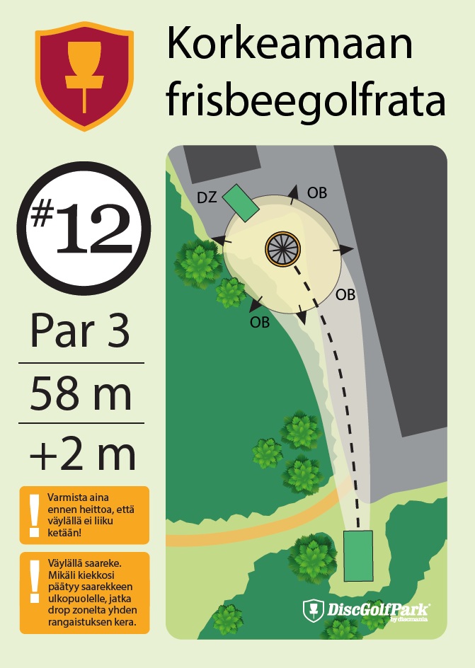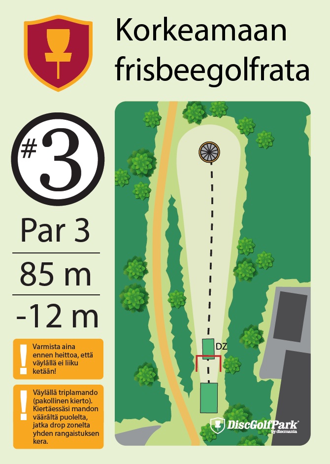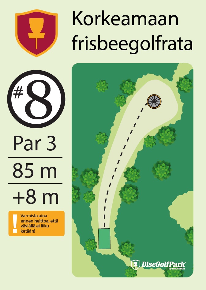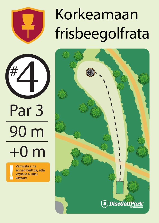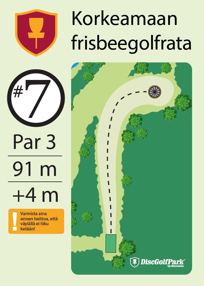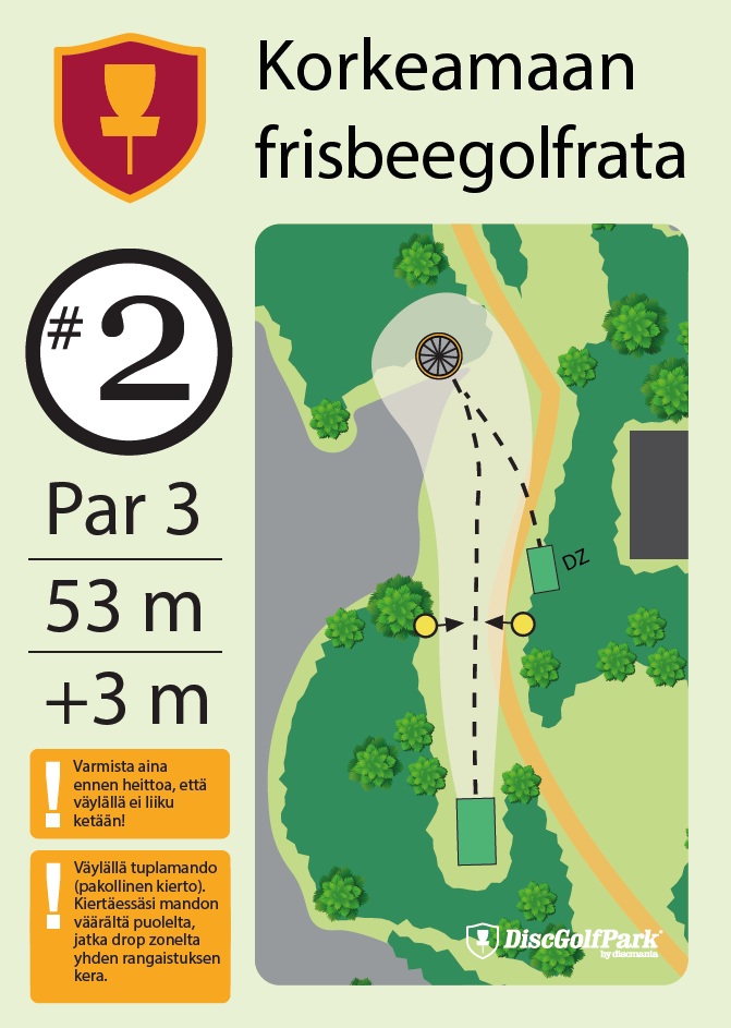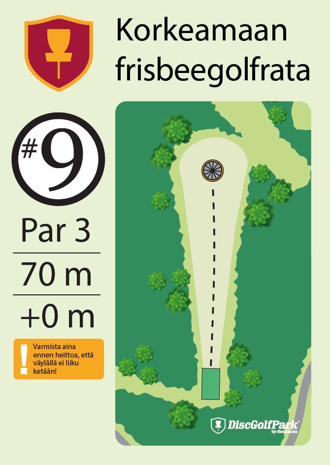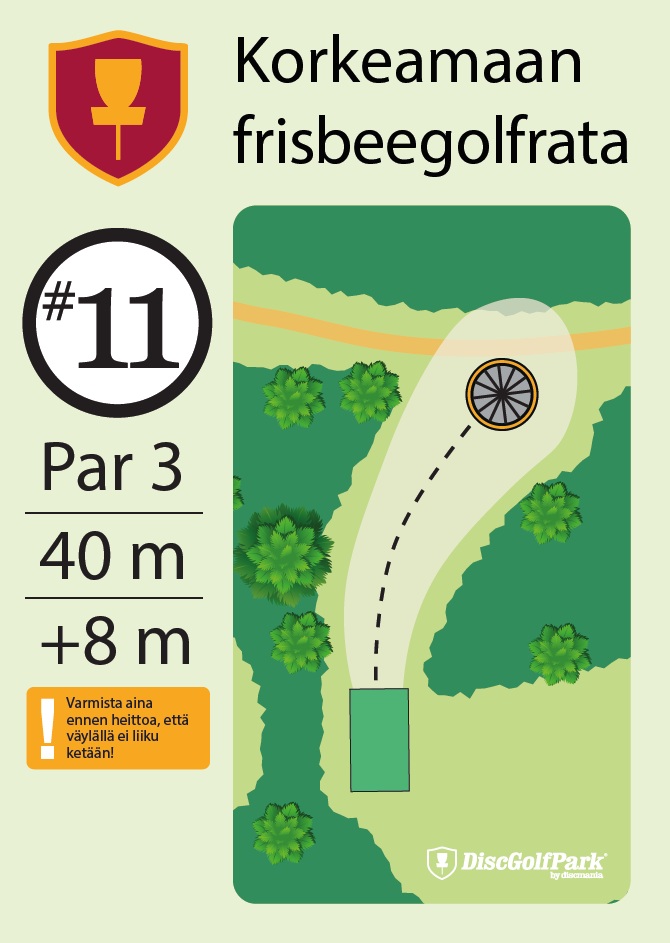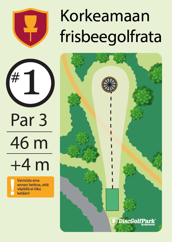Talvipelattavuus ei tiedossa Korkeamaan frisbeegolfrata sopii hyvin monentasoisille heittäjille. Mäkisen metsäradan 12 väylää ovat monipuolisia, ja niiden pituudet vaihtelevat 40 metristä aina 230 metriin asti.