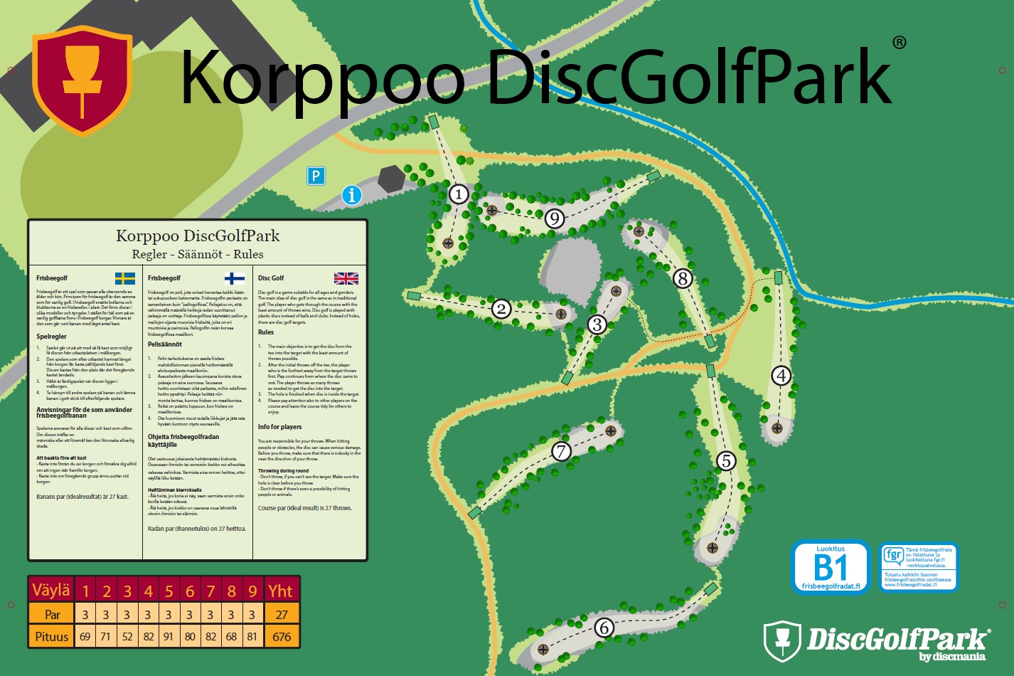 Korppoo DiscGolfPark on 9-väyläinen B1 luokiteltu rata jossa väylien pituudet ovat 50-90 metrisiä. Rata sopii hyvin aloittelijoille ja harrastajille. Rata on Ulkosaaristen koulun vierestä josta tulee uusia harrastajia tai lajin kiinnostuneita.