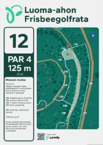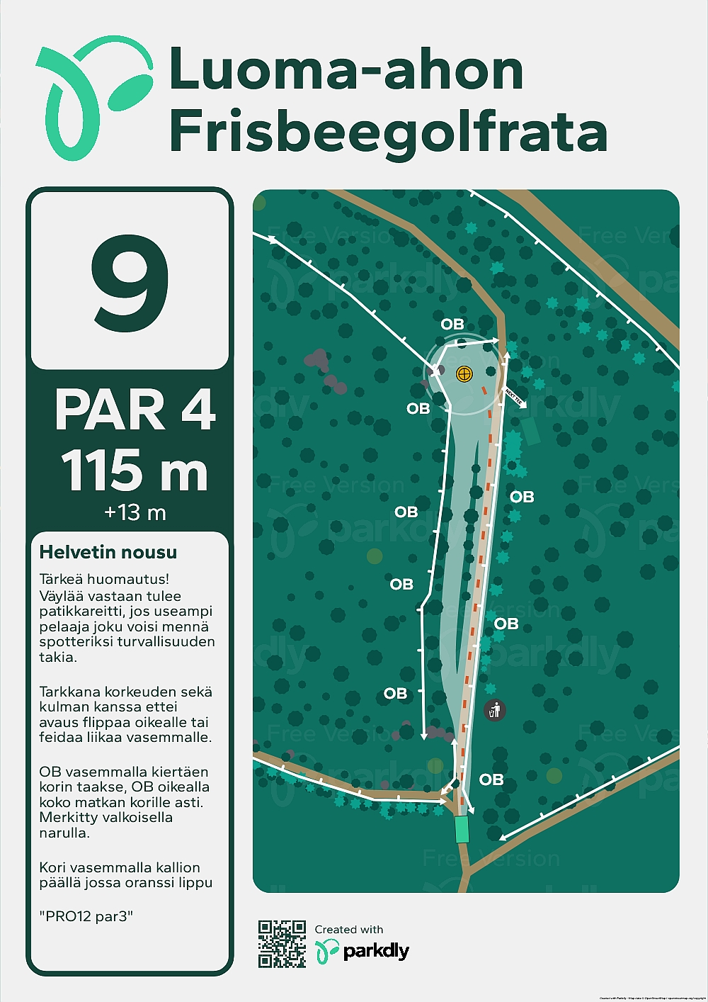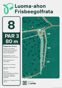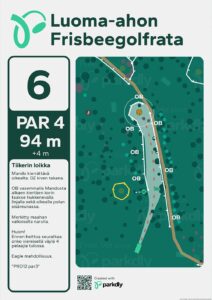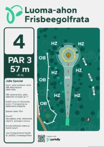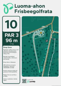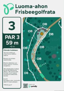Kierretään vaihtelevassa maastossa jossa korkeuserot, tiukat linjat ja osassa väyliä oma OB:n ympäröimä pelialue tuovat radalle ja pelaamiseen oman luonteen. Tarkkuus, oikea kiekko ja heittovalinnat ovat avainasemassa onnistumiseen.