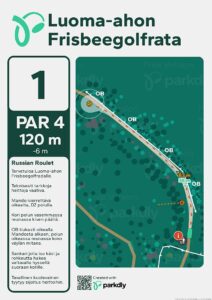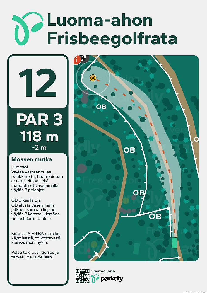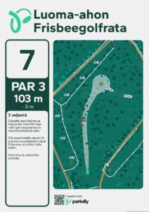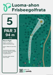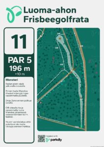 Kompaktiin pakettiin suunniteltu ja toteutettu toistaiseksi 12-väyläinen frisbeegolfrata.