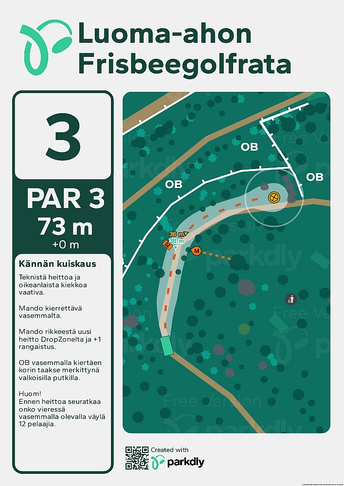 Pituus 73 metriä. Par 3