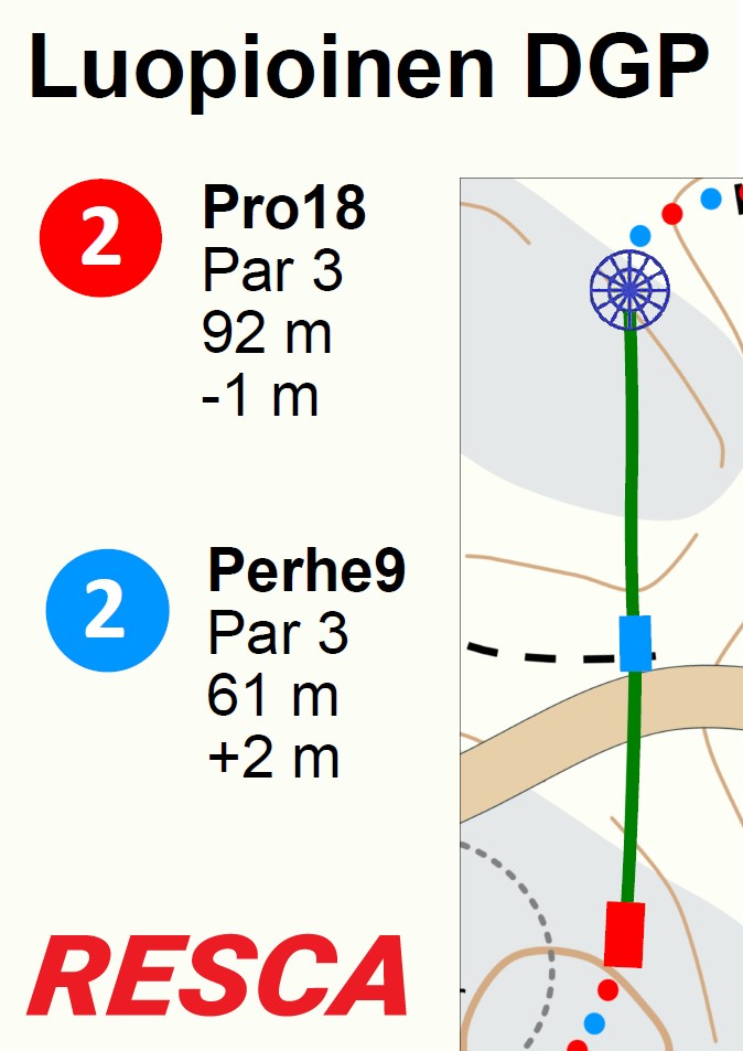 A-paikat tarkoitettu kokeneille heittäjille. B-paikat taas soveltuvat hyvin lapsille ja aloittelijoille. Kierros aika reilu 1 h.