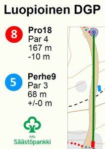 – Sekä muutamia pienempiä frisbeegolfratoja