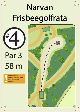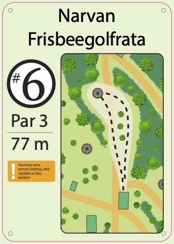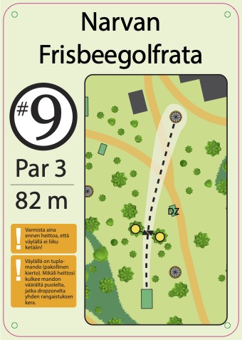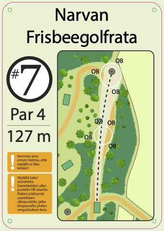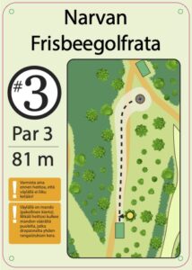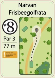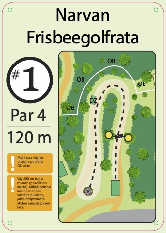 Rata on uusittu 2025, rata on rakennettu pururadan yhteyteen. Väylien ympäristössä on vielä oksia paljon rakentamisen jäljiltä. Rata on mäkinen ja näin tuo monipuolisia ylä ja alamäki väyliä sekä rysty ja kämmenheittoja suosivia väyliä. Rata sijaitsee Narvan koulun takana eikä näin näy suoraan tieltä.