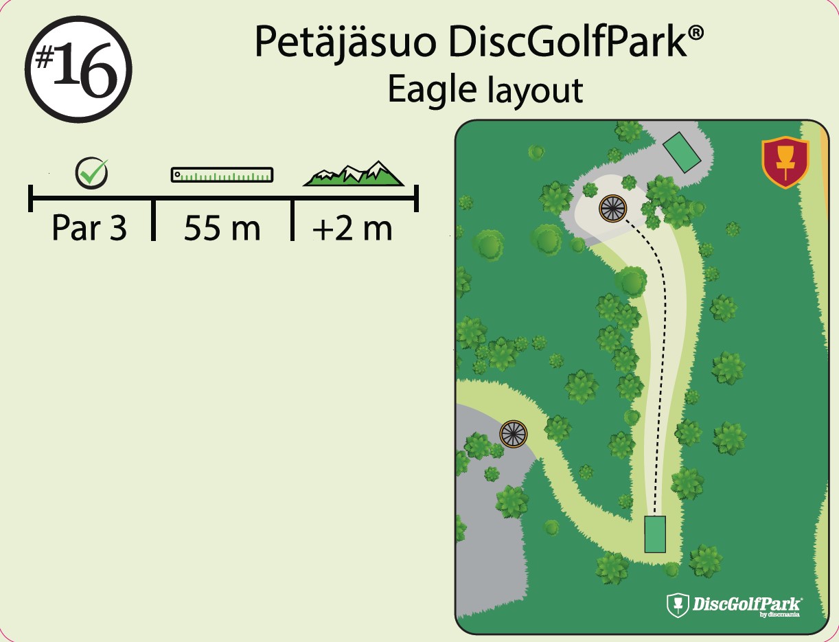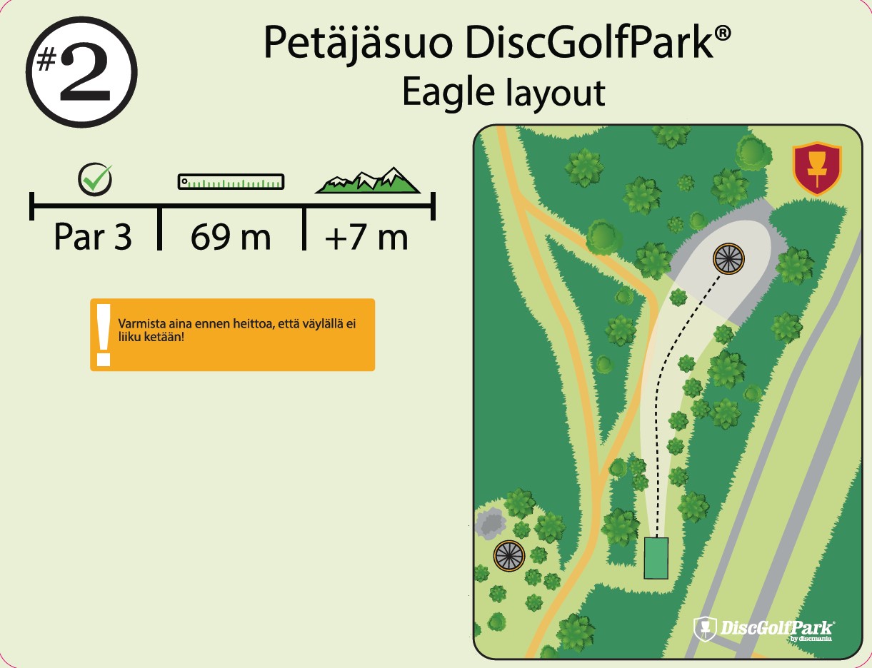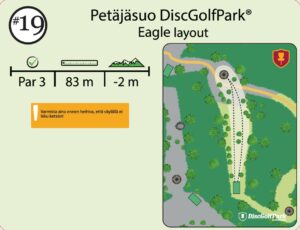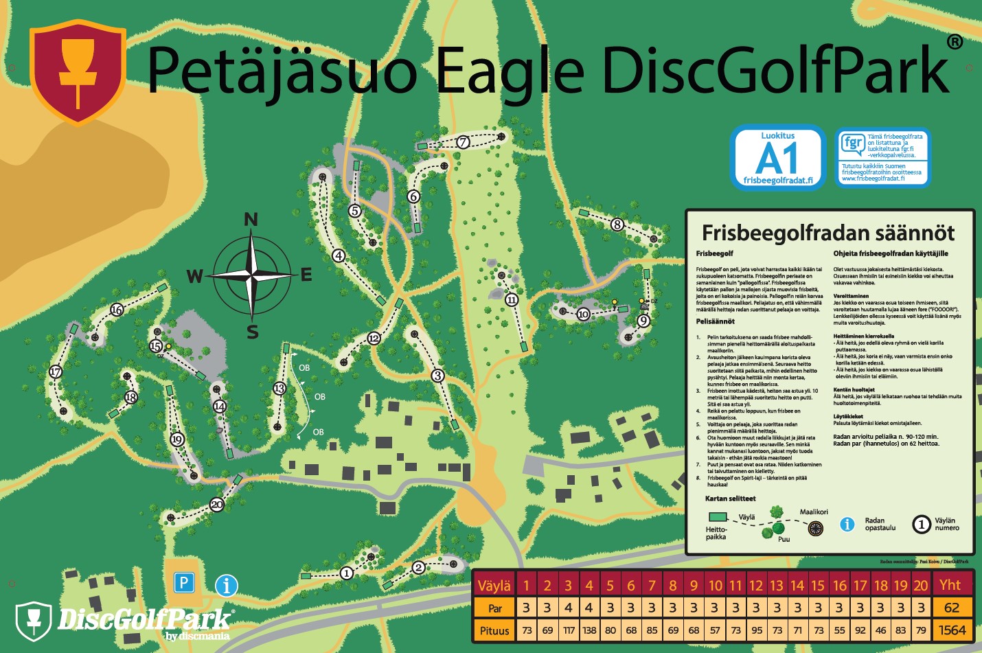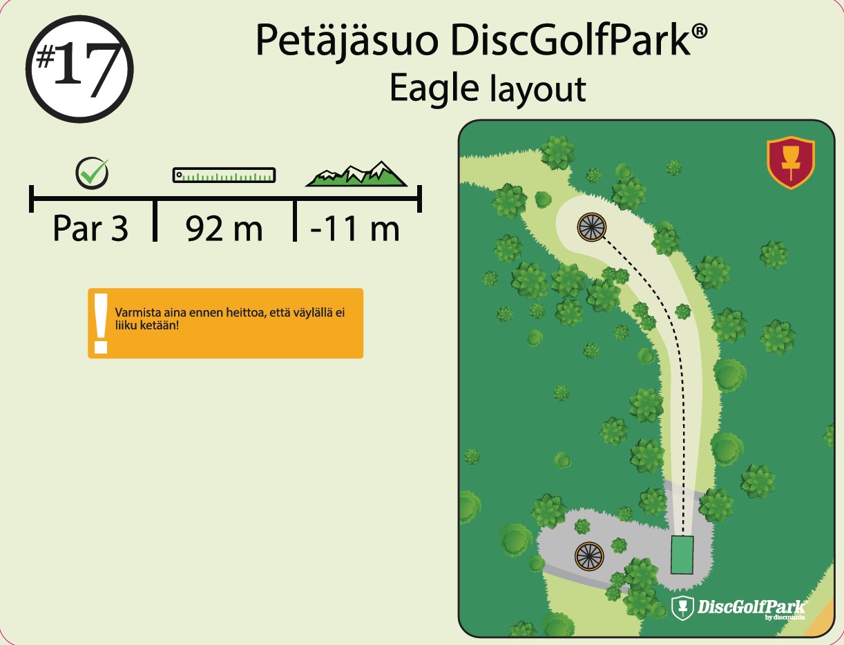 Pelattavissa talvella, talvikunnossapito Kotkan Petäjäsuolle 2024 valmistunut 20-väyläinen Eagle (AM)-layout on osa Petäjäsuo DiscGolfPark-kokonaisuutta. Kyseessä on harrastelijaystävällinen metsärata. Väylät ovat lyhyehköjä, mutta teknisesti haastavia ja monipuolisia
