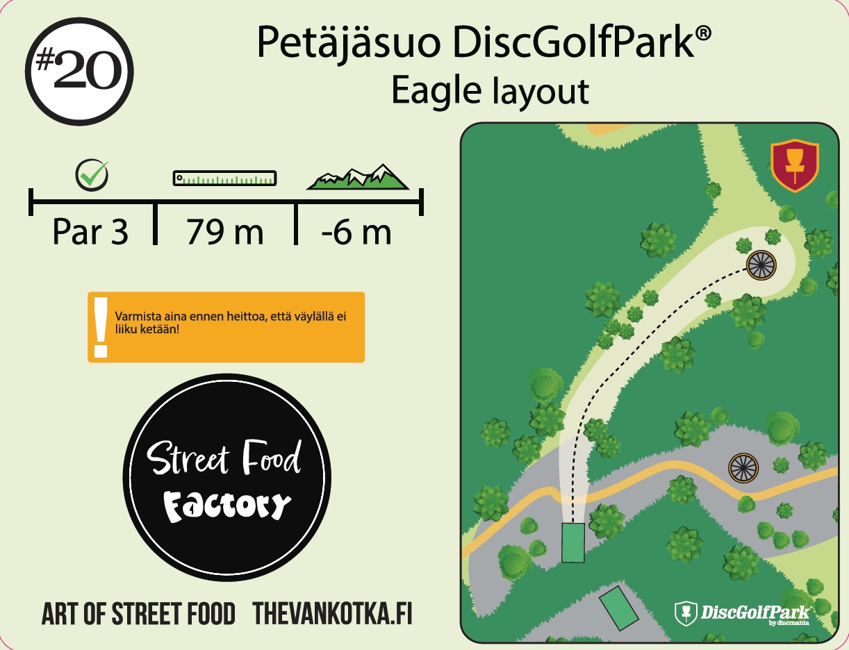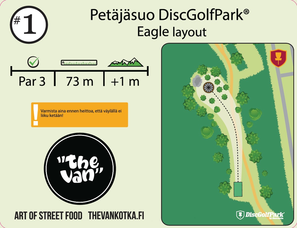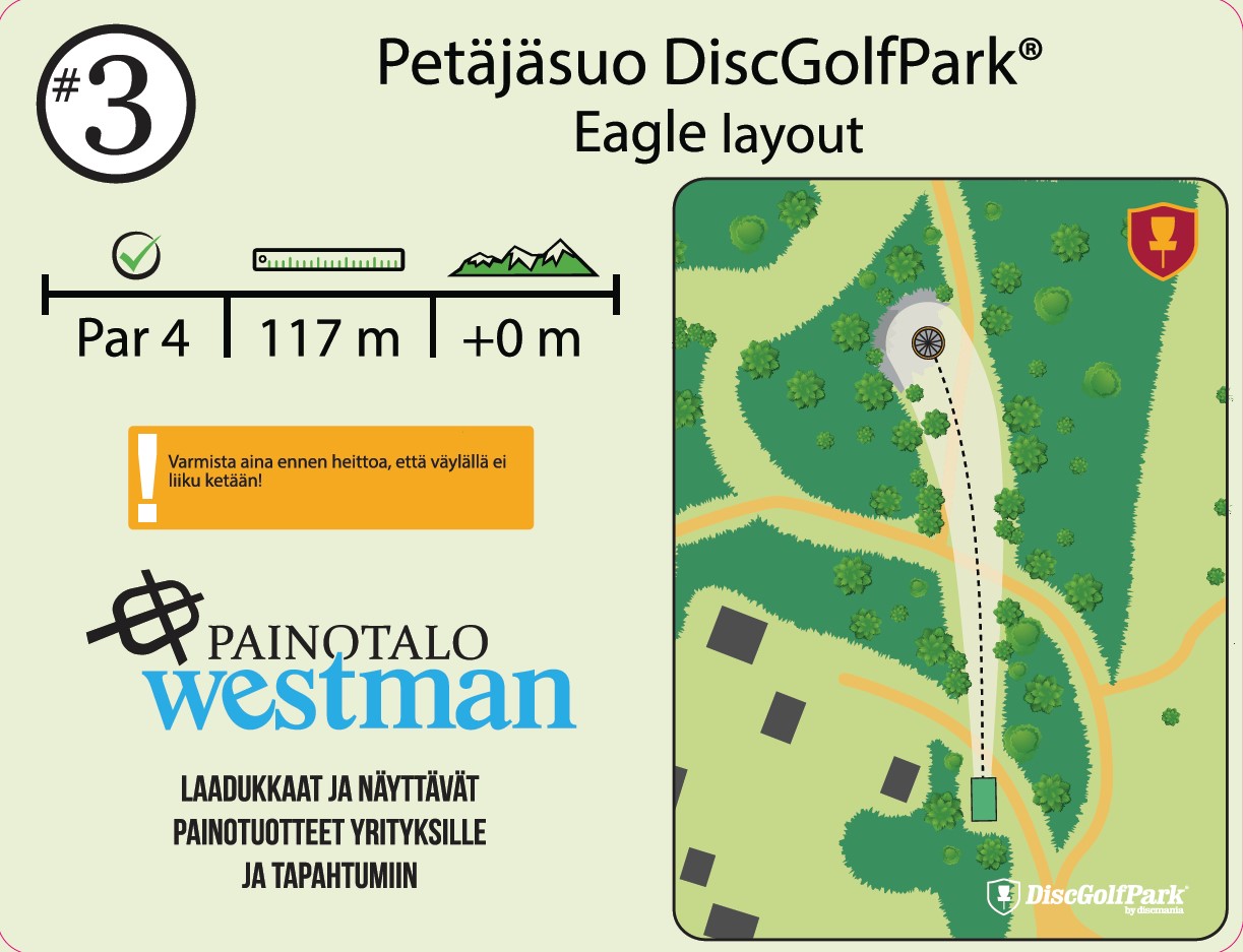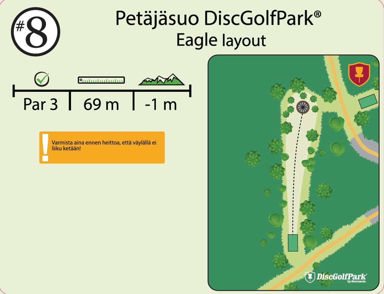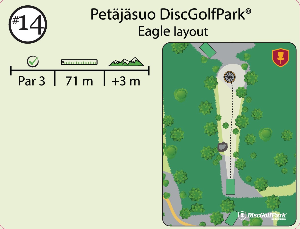 Pelattavissa talvella, talvikunnossapito Kotkan Petäjäsuolle 2024 valmistunut 20-väyläinen Eagle (AM)-layout on osa Petäjäsuo DiscGolfPark-kokonaisuutta. Kyseessä on harrastelijaystävällinen metsärata. Väylät ovat lyhyehköjä, mutta teknisesti haastavia ja monipuolisia