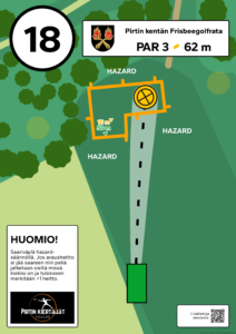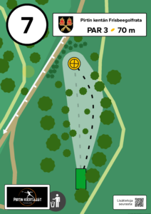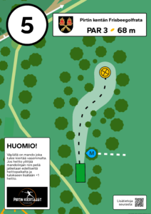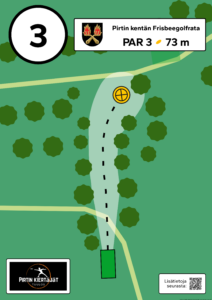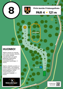 Saariväylä hazard-säännöllä. Jos kiekko ei jää saareen niin peliä jatketaan sieltä missä kiekko on ja tulokseen lisätään +1 heitto.