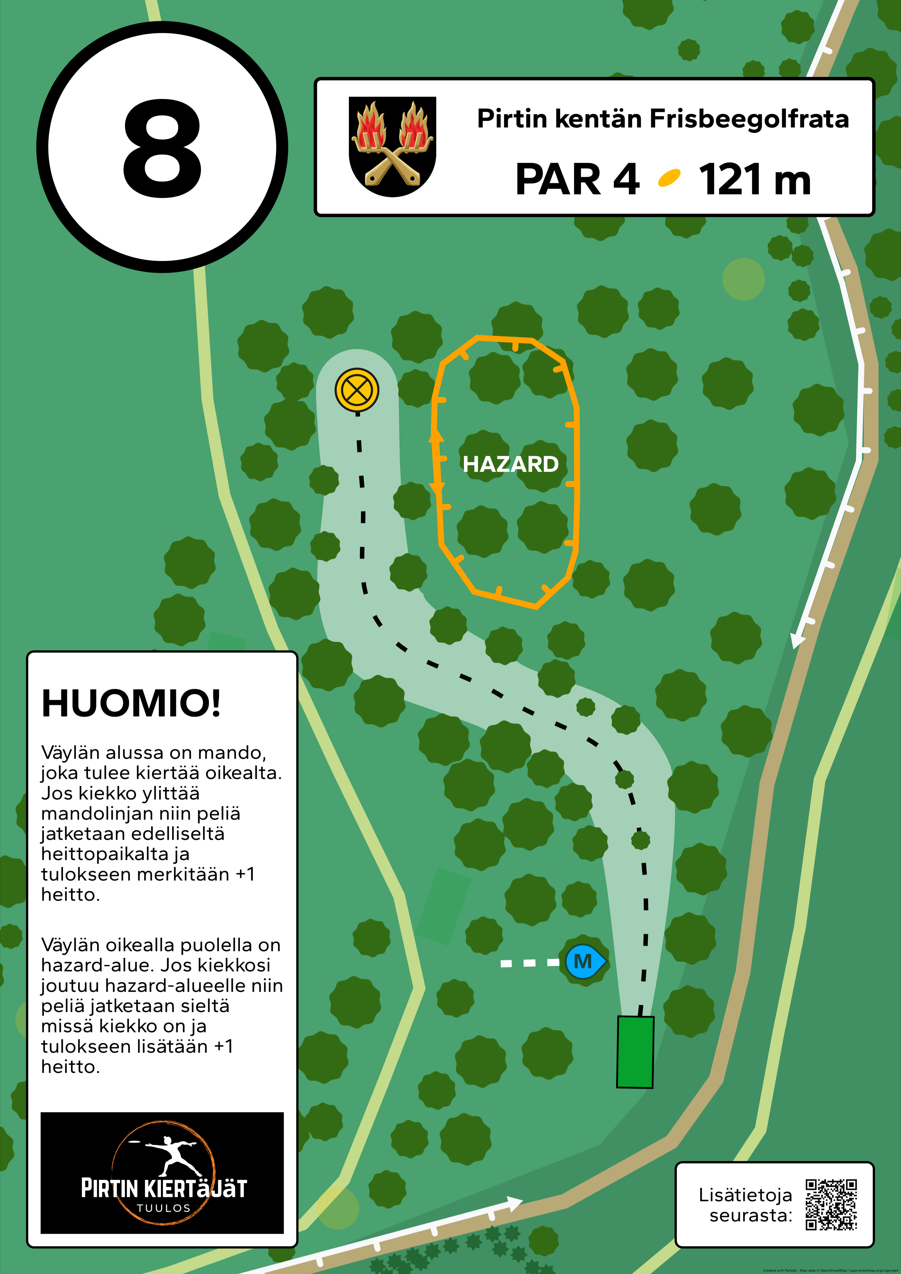 Ihan jees lenkkeily polkua keirtävä metsärata. Aika haastava rata myös. Polulta heittäminen metsään rankaisee. 8 väylä oli toki vähän ihmeellinen mando puu. Millaisen heiton tässä saa korille puun kiertäen mandosta? Kasi väylää lukuunottamatta ihan hyvä rata kuitenkin. Kasiväylän mando puusta en tykäänyt.