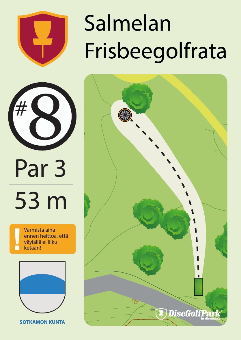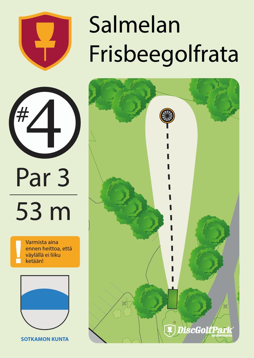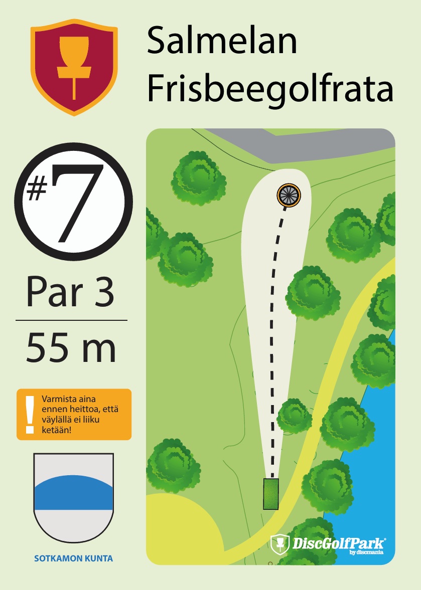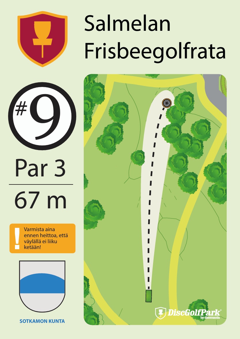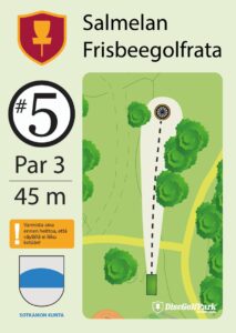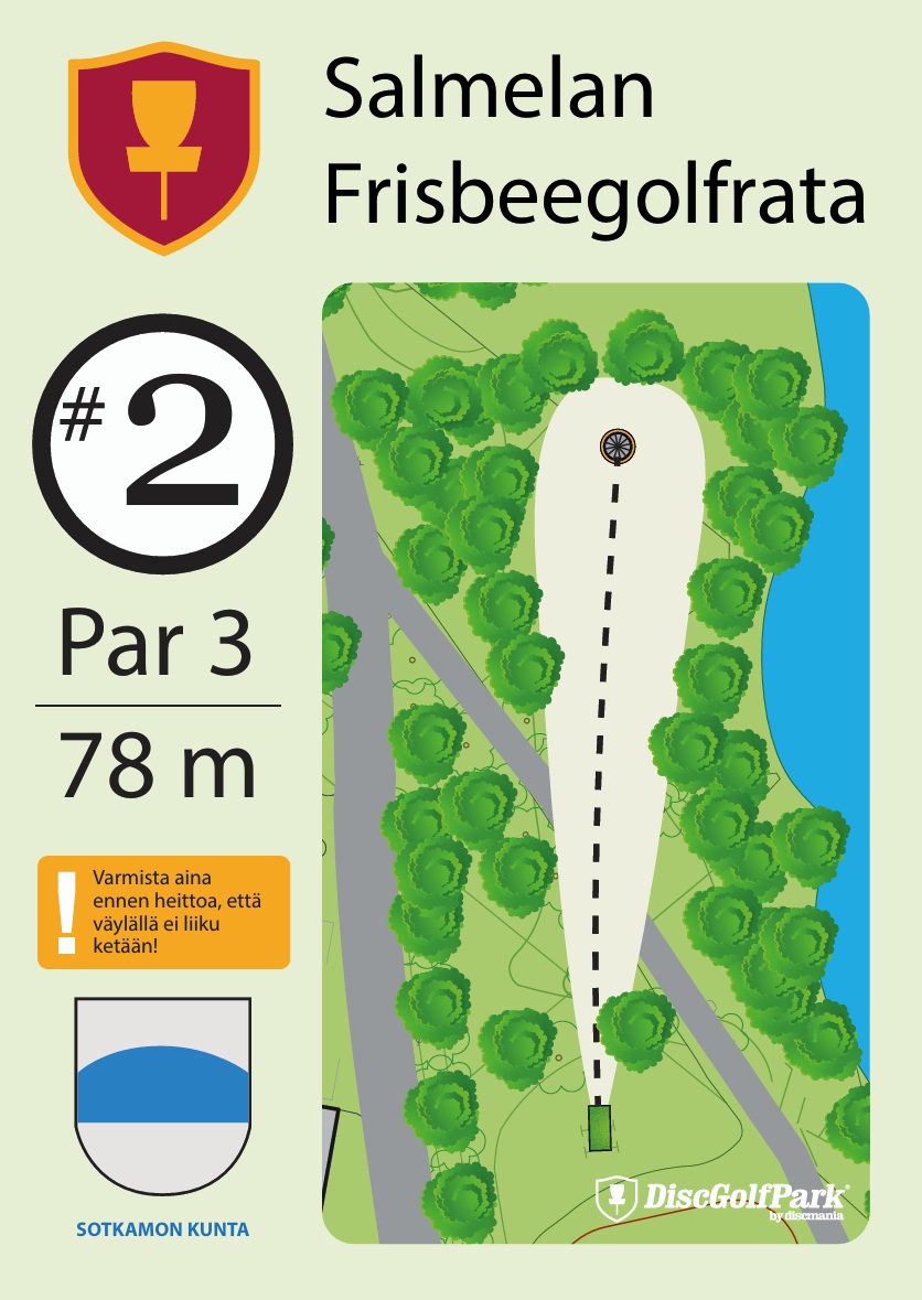 Talvipelattavuus ei tiedossa Salmelan lähiliikunta-alueella, järven kupeessa sijaitseva 9-väyläinen frisbeegolfrata. Rata soveltuu hyvin aloittelijoillekin. 3. väylästä on kaksi eri versiota. 3a-väylä pelataan veden ylitse, joten kiekkonsa menettämistä pelkäävien kannattaa pelata väylän b-versio.