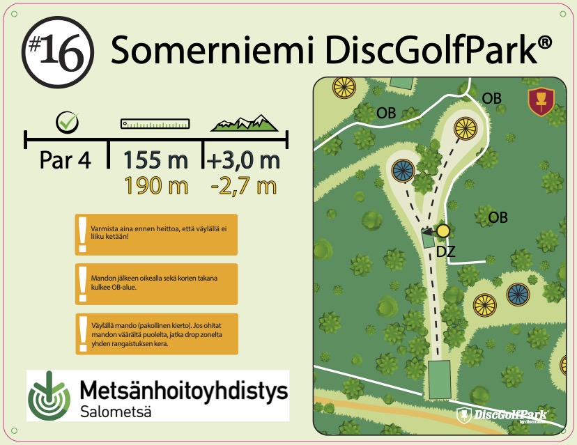 Frisbeegolfrata on rakennettu talkoovoimin Somerniemen Mandomissien ja Someron Esan toimesta.