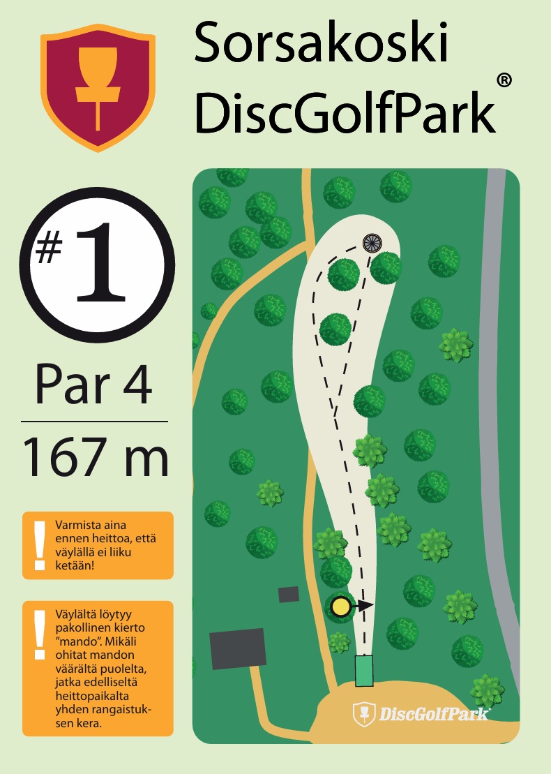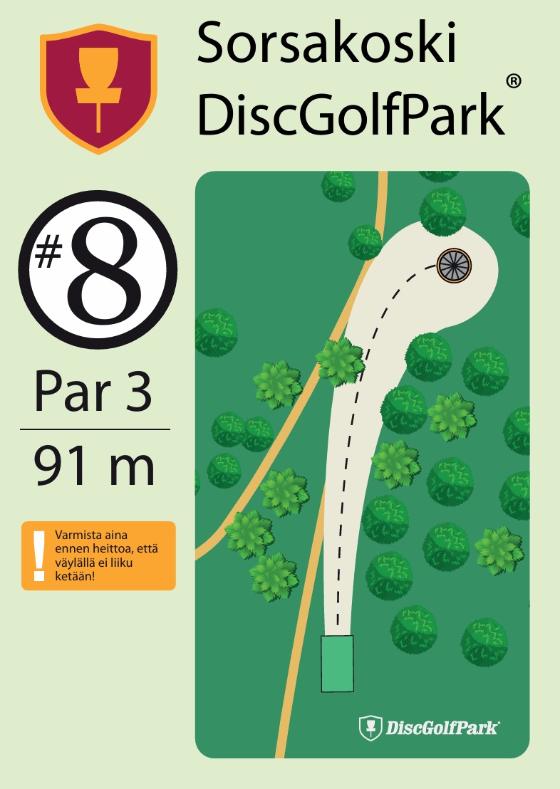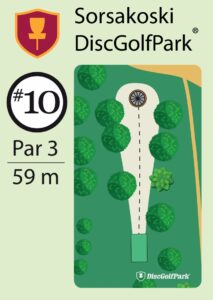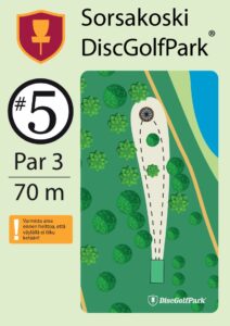 Leppävirran Sorsakoskella Niskaharjun Lavan ja kuntopolun maastossa Sorsakoski DiscGolfPark. 10-väylää, 913m ja B1-luokitus.