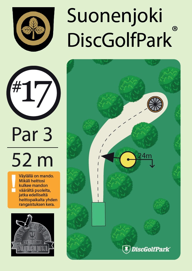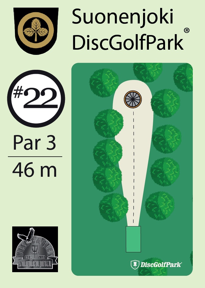 Lähellä Suonenjoen keskustaa, urheilukeskuksen ja ulkoilureittin ympäristöön rakenneltu rata. On korkeuseroja. On muutama avoimella heitettäviä mutta isoilta osin metsäväyläksi tämä mesta on laskettava. Valitettaavsti osa mestän siimeksessä heitettävistä on aikas ”tukkoisia”, erityisesti jos väylältä poikkeaa. En ehkä lähtisi matkan päästä ”asioikseni” tälle radalle mutta jos matka vie Suonenjoen ohi ja aikaa on, niin radan voi käydä läpi heittämässä.