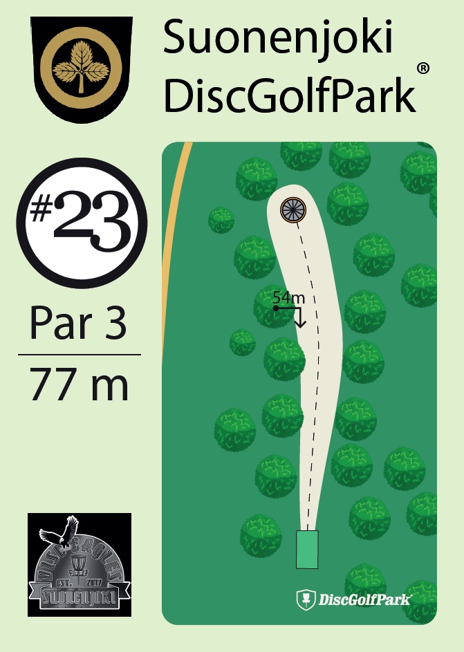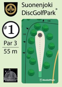 Suonenjoen keskustan tuntumassa jäähallin ja pururadan välittömässä läheisyydessä Suonenjoki DiscGolfPark, 23-väylää (1966m) ja A1-luokitus.