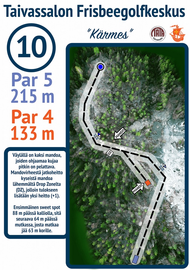 Taivassalossa haastava ja monipuolinen, kaksi layouttia sisältävä 18-väyläinen frisbeegolfrata. Alueella myös 5-väyläinen harjoittelurata aloittelijoille.