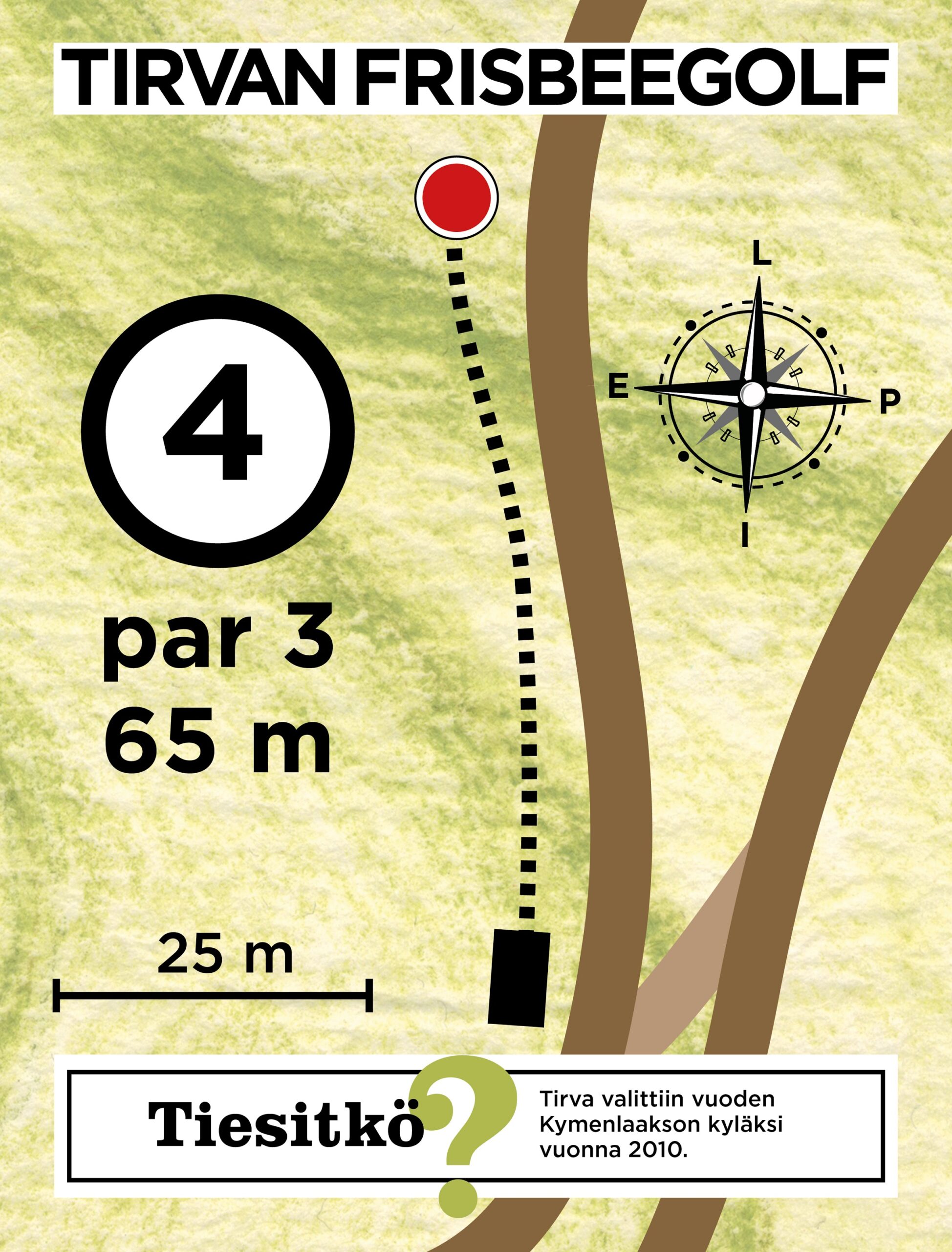 Tehkää itsellenne palvelus ja älkää ikinä eksykö Tirvan frisbeegolfradalle. Korit olivat niin hevonperseessä, että tirvan suunnistusseuran jäsenillä on täysityö löytää ne. Koko radan paras osuus oli viimeiselle väylälle saapuminen ja tieto siitä että tämä tuska on ohi. Väyläkartat näyttivät samalta kun omat 6-luokan kuvaamataidon tekeleeni. Heittopaikkoina toimineet sorakuopat olivat huonot vauhdinottoon, joten jokainen avausheitto lensi päin persettä. Avausheittojen epäonnistuminen ei ollut kiinni pelkästään heittopaikoista sillä väylät olivat keskimäärin 5m levyisiä.
