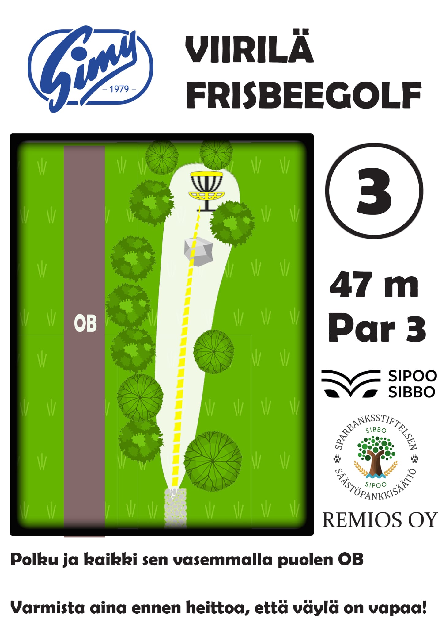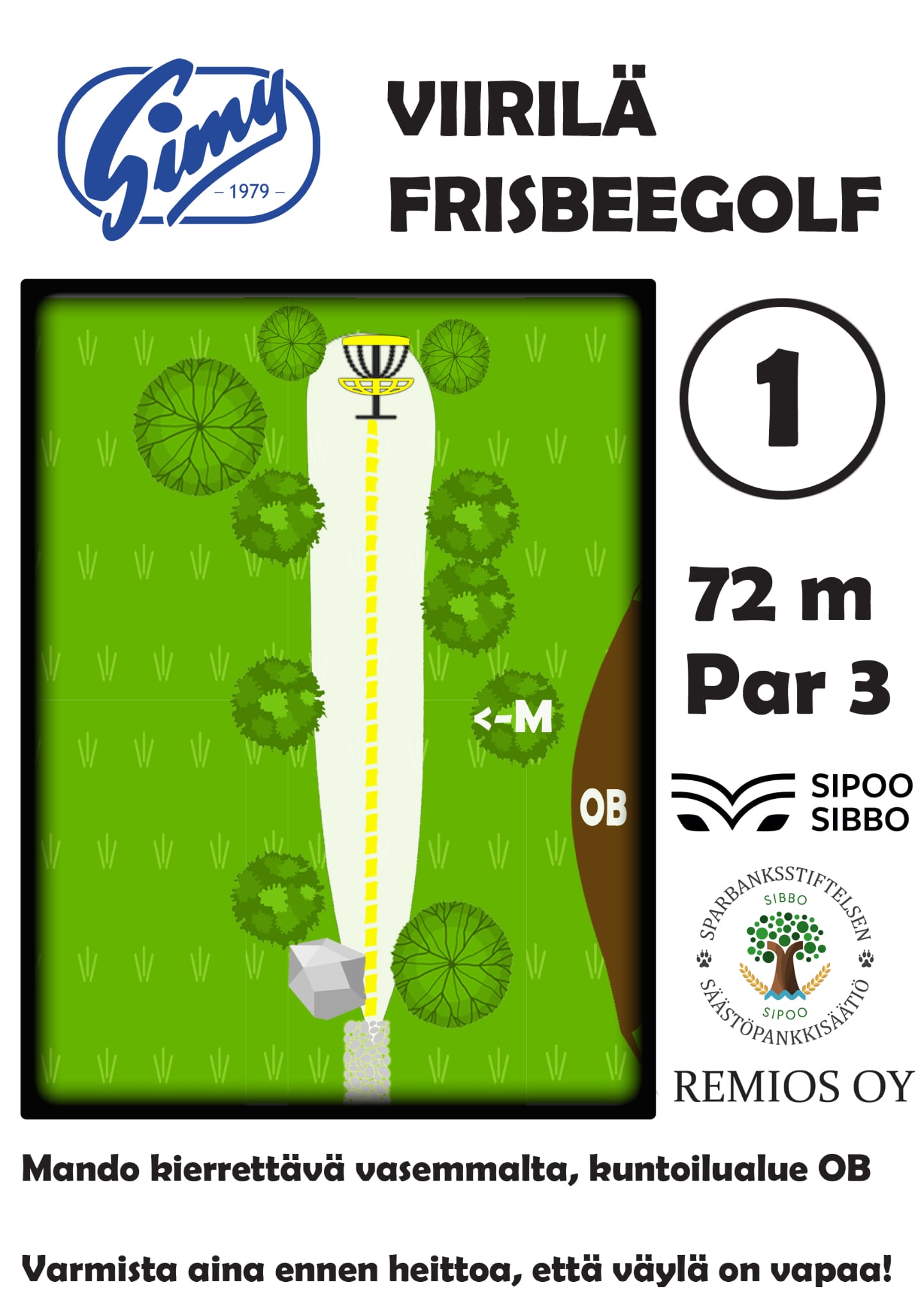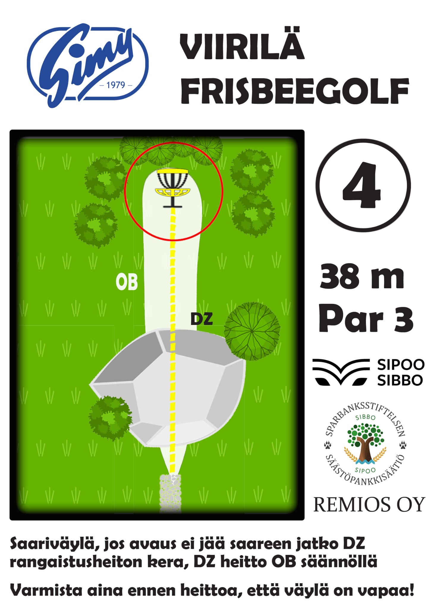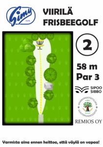 Sipoon Myyrien 4-väyläinen frisbeegolfrata Viirilän kentän länsipuolella olevalle mäellä.