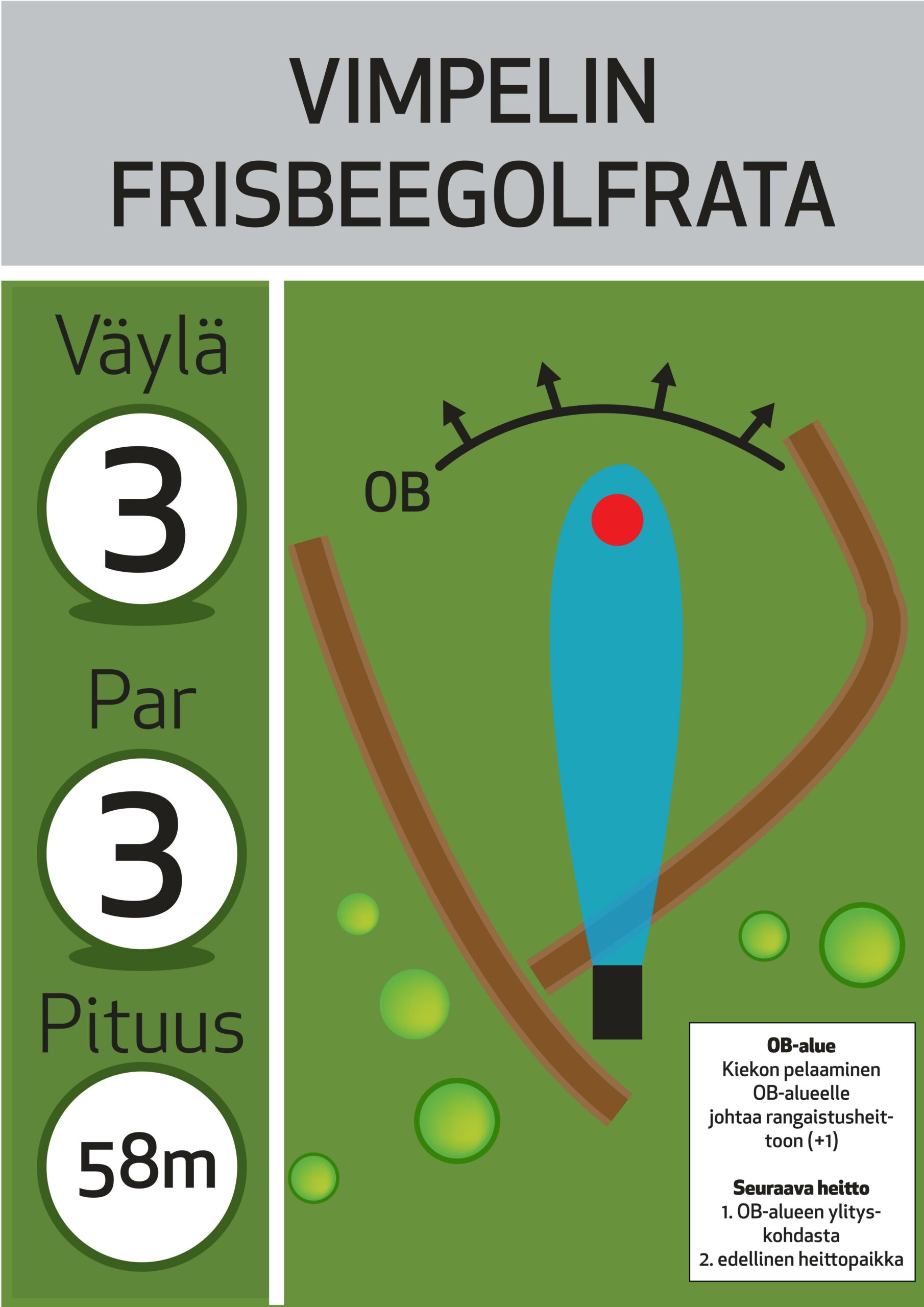 Pituus 58 metriä. Par 3