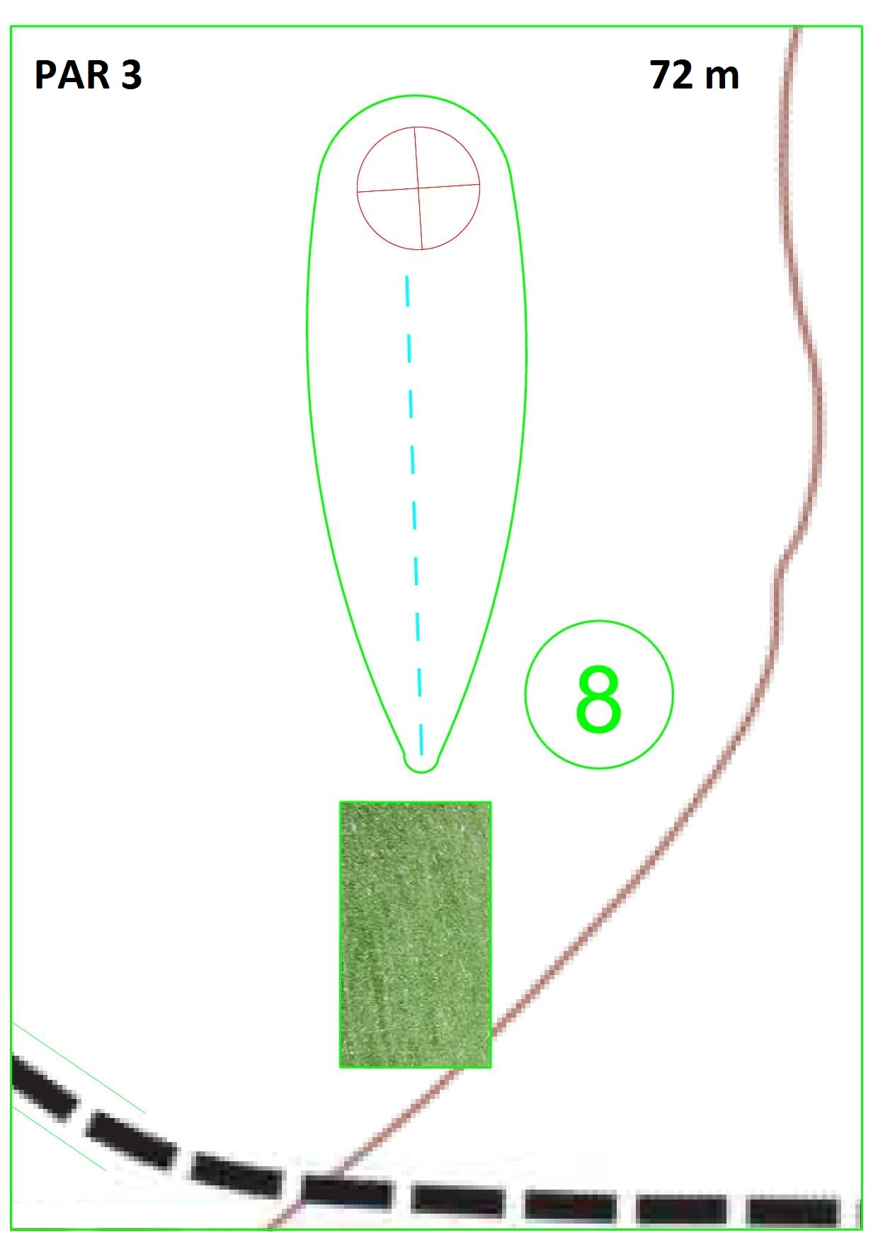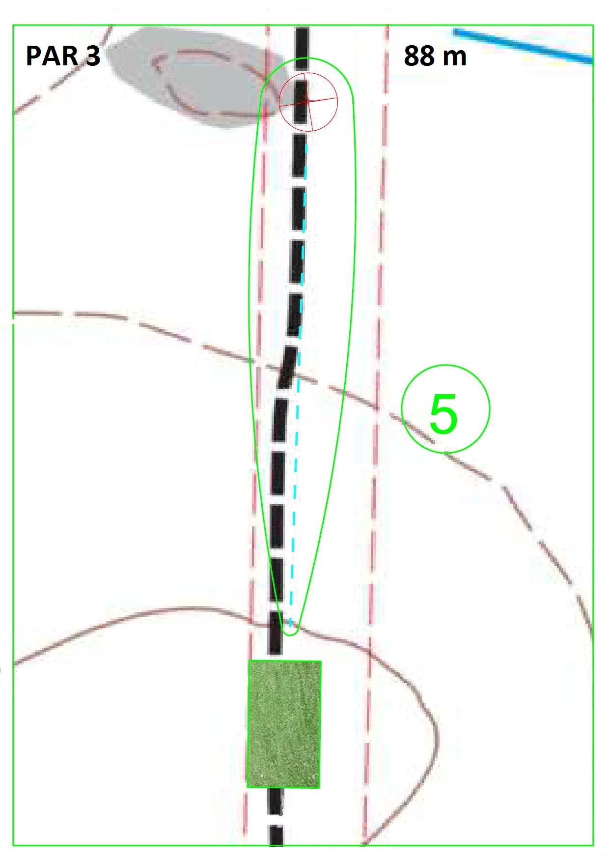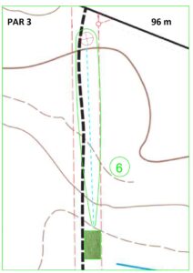 Mutta sitten että jotta… mistä aloittaisi… Eka väylä hoitamaton viidakko mihin heippa kiekot, jos ei spottaus tarkkaa. Niittokonetta tarvittaisiin ja rankalla kädellä! Kamala väylä! Kun oli toipunut ykkösen ahdistuksesta, niin ahdistus muuttui järkytykseen kutosväylällä. Kaikkien surkeiden väylien esikuva ja ilmentymä. Ensin näyttää, jotta heittotilaa on runsaasti, mutta sekä oikealla että vasemmalla odottaa sellaiset ryteikköojavesipuskamonsterit että harvoin tuollaista näkee. Tämä tajuttiin vasta, kun pojan kiekko feidasi vähän oikealle. Erittäin hyvällä tuurilla löytyi kuitenkin kiekko pitkän etsinnän jälkeen. Vitosen heitto osin sokkona ja kutosen heittopaikka aivan liian likellä. Kutoselta seiskalle siirtymä peräti kahden edellisen väylän linjaa pitkin!