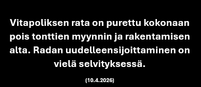 Vitapoliksen väyläkuvaukset eivät pidä enää paikkaansa. Tänä kesänä muutettiin, ja on paljon parempi kuin ylläolevien kuvausten aikana…
